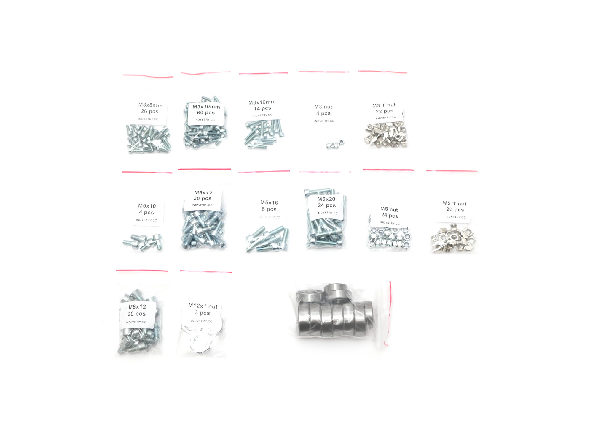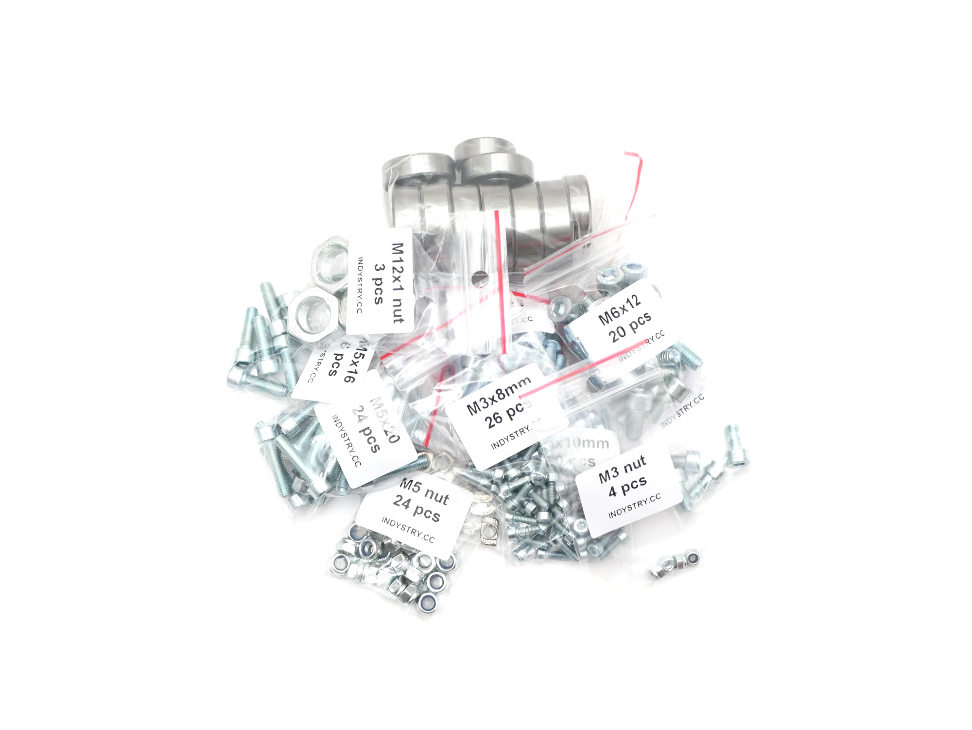 Wszystkie śruby i łożyska potrzebne do zbudowania IndyMill. Wszystko jest już policzone i posegregowane, dzięki czemu nie musisz kompletować części z wielu różnych źródeł.